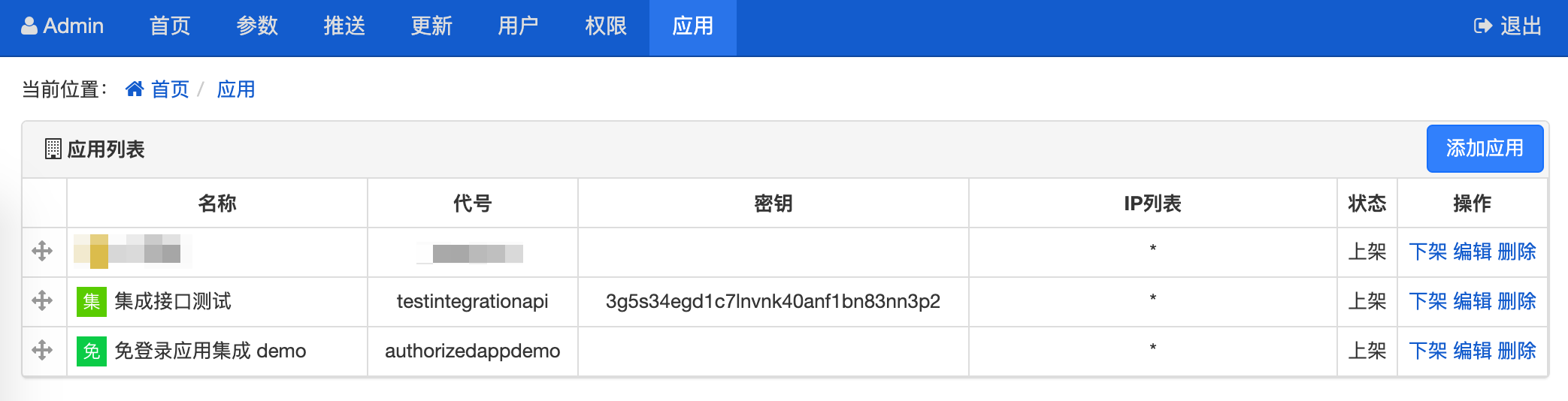 登录喧喧后端管理系统,打开“应用”管理界面;