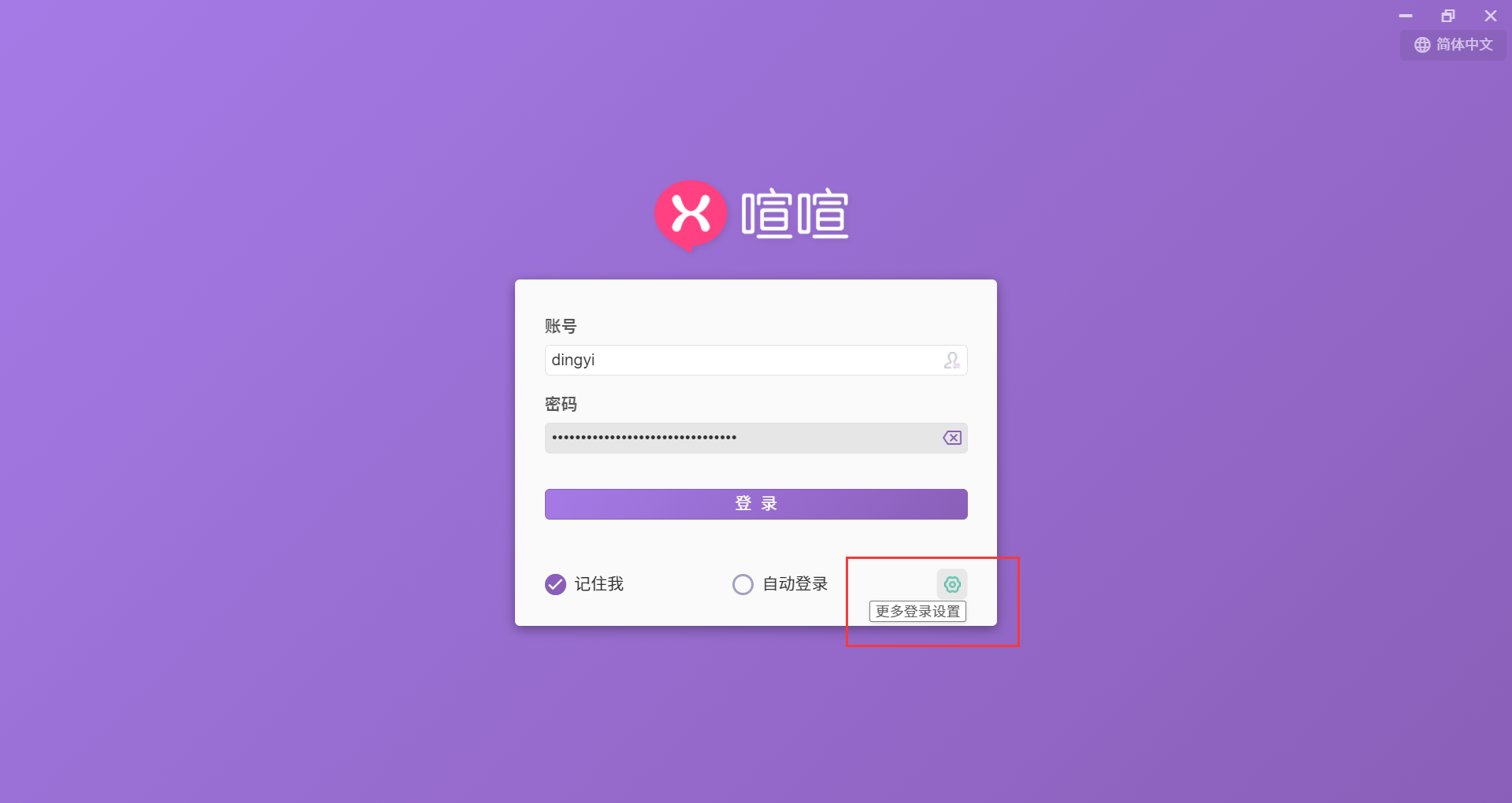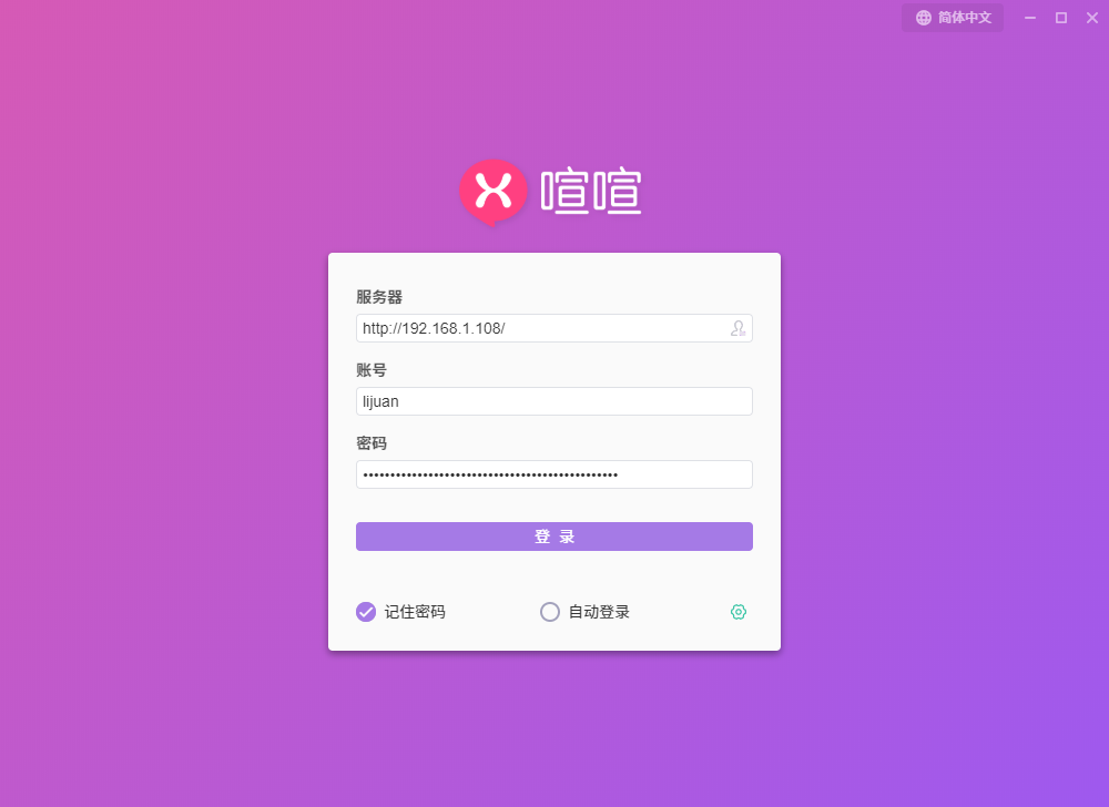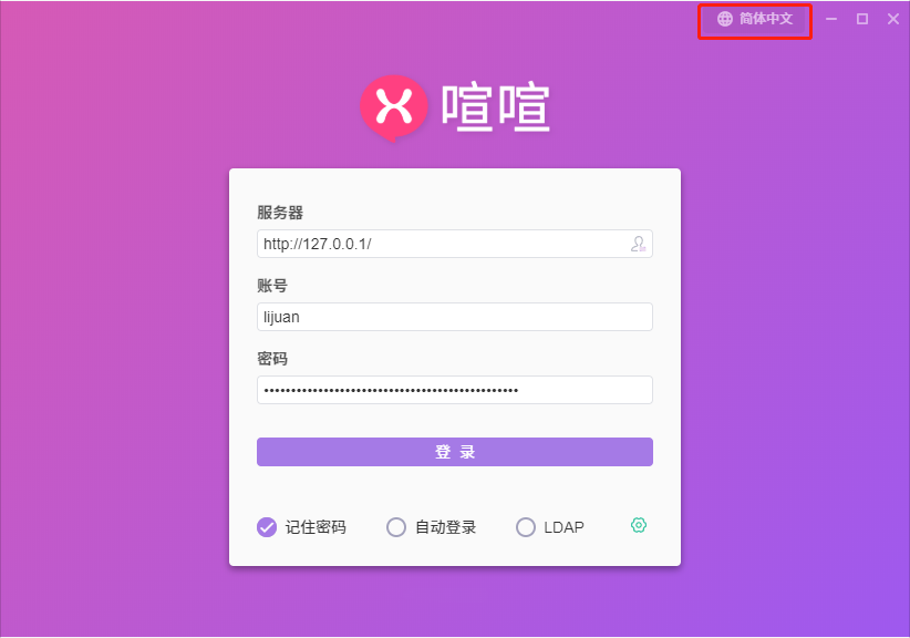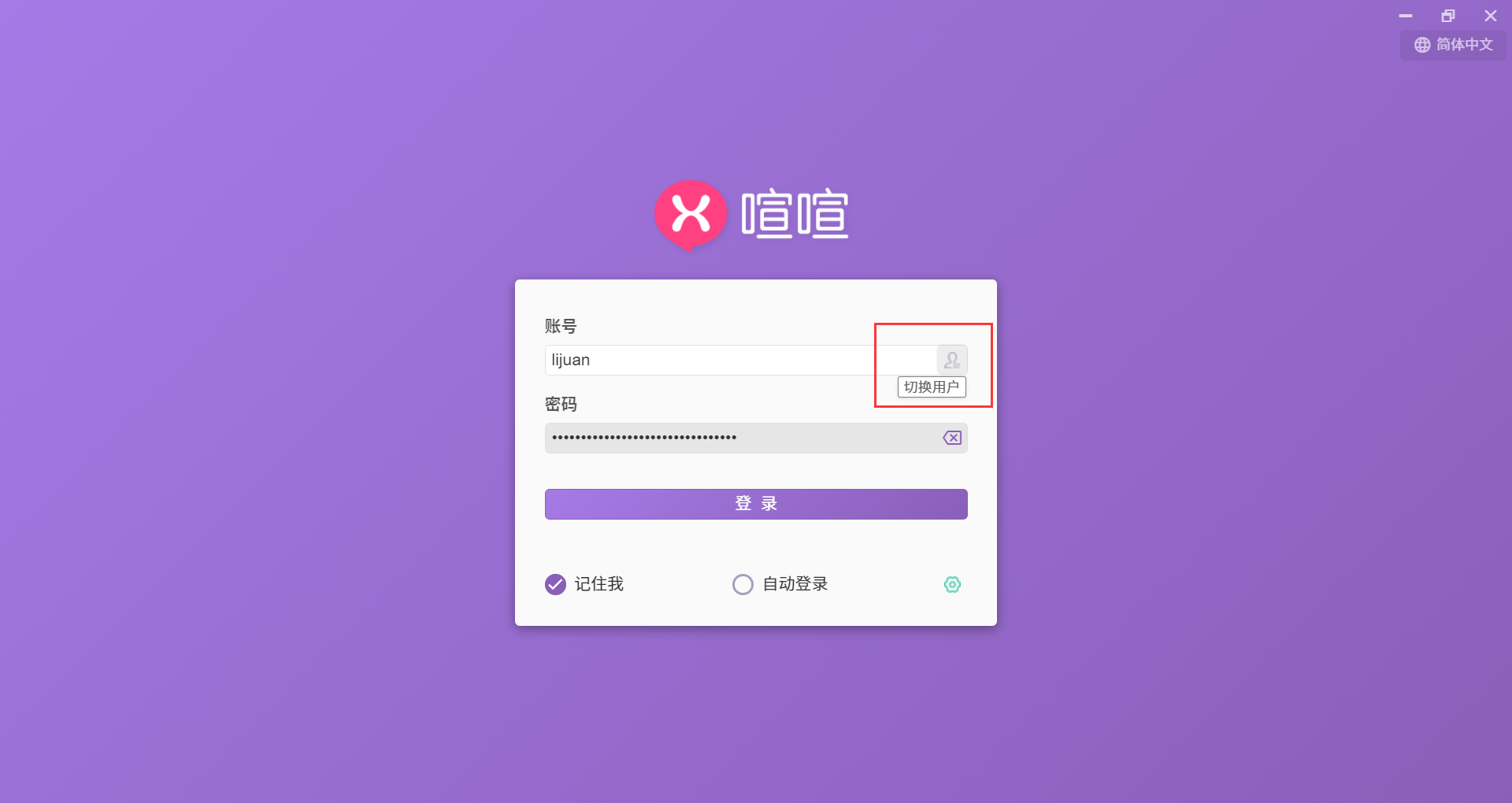 那么接下来,我们就可以使用XXB里的用户账号和密码,来登录喧喧客户端了。