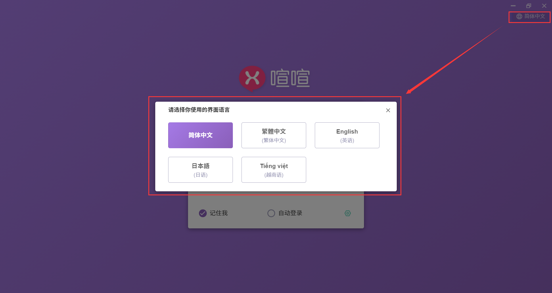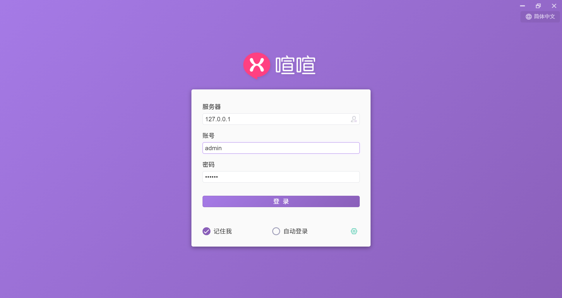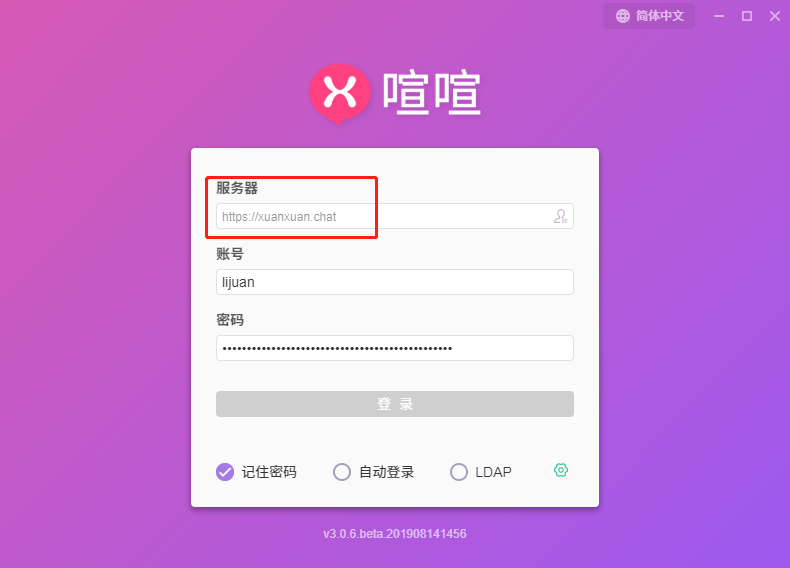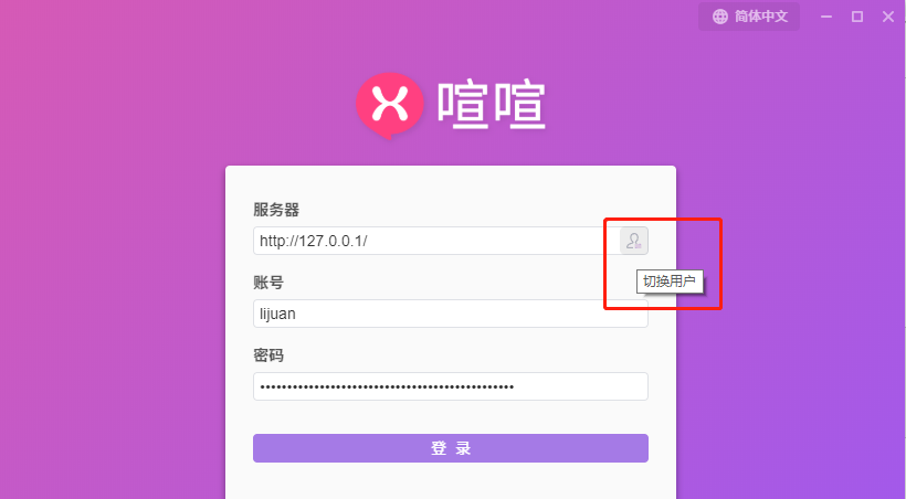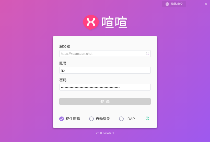 那么接下来,我们就可以使用XXB里的用户账号和密码,来登录喧喧客户端了。