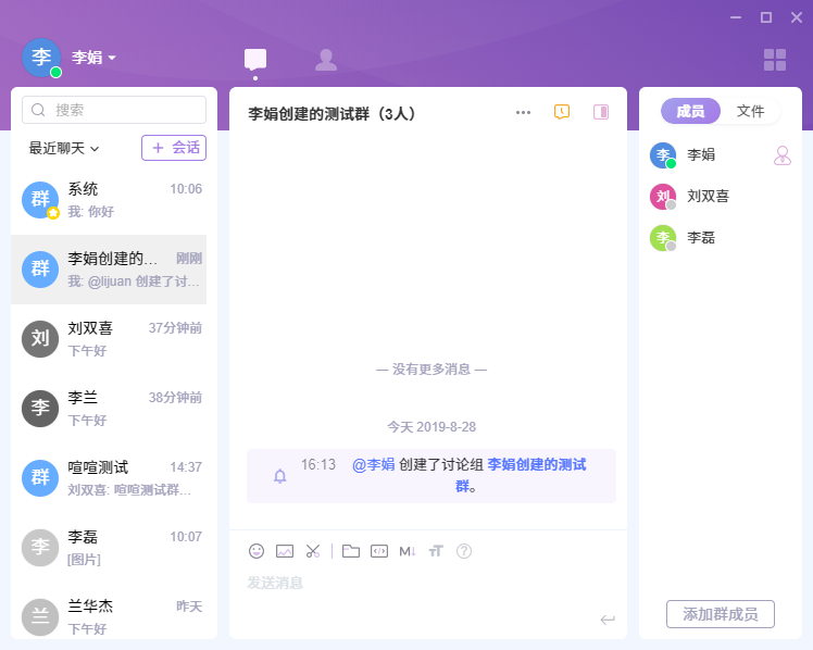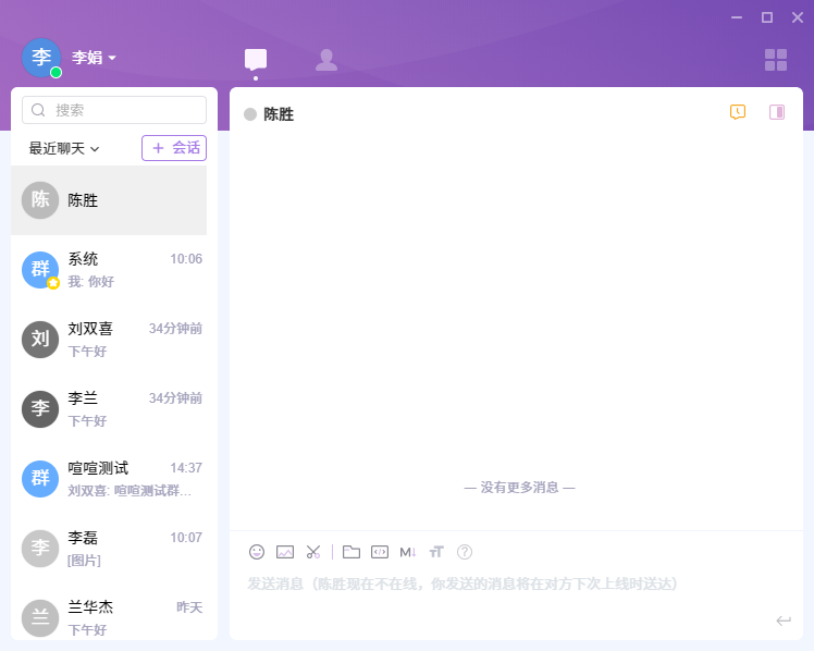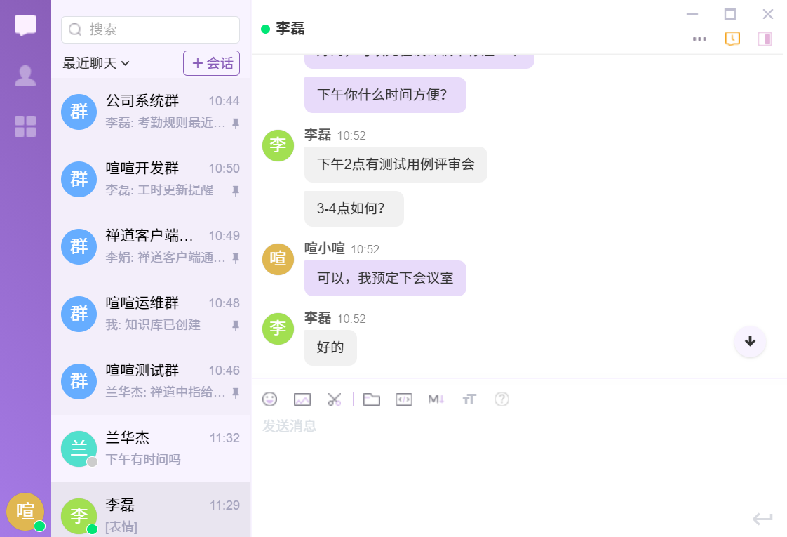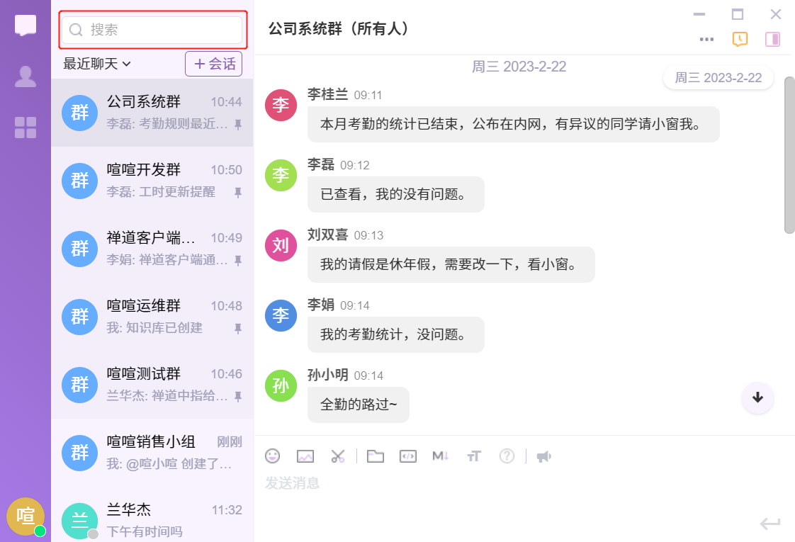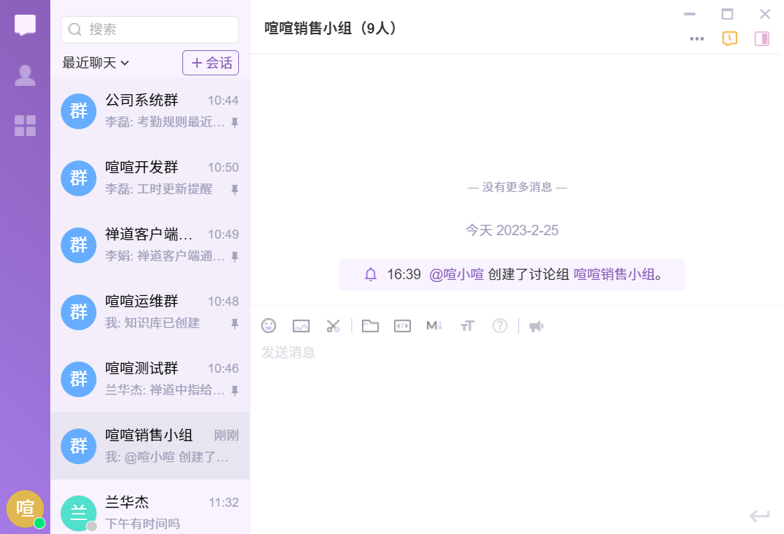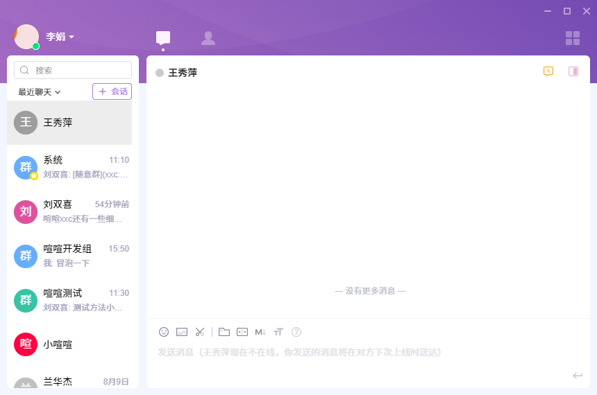 登录了喧喧客户端后,那么我们就可以开始和小伙伴们聊天了。