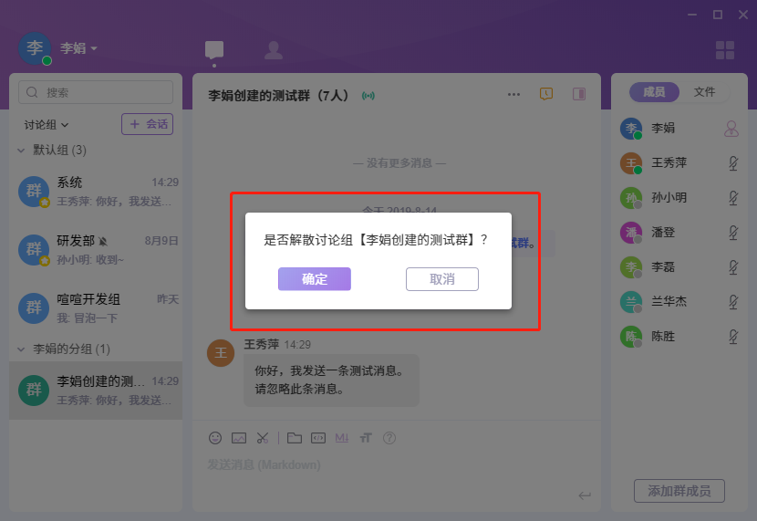 管理员解散群组: