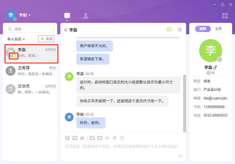 - 收藏: 收藏的会话,会显示黄色星星标识,默认在会话列表里会靠前显示, 方便快捷访问此会话。