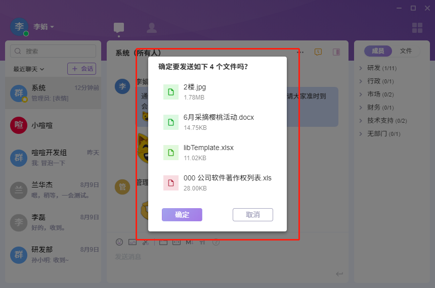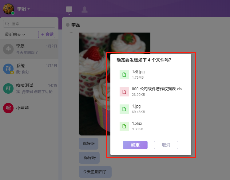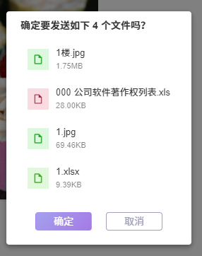 拖放图片文件成功后,会提示是否确认发送这些图片和文件。
