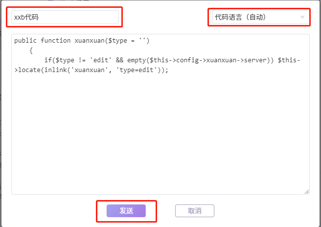 输入要发送的代码,还可以设置该条代码的名称,填写完成点击发送即可。