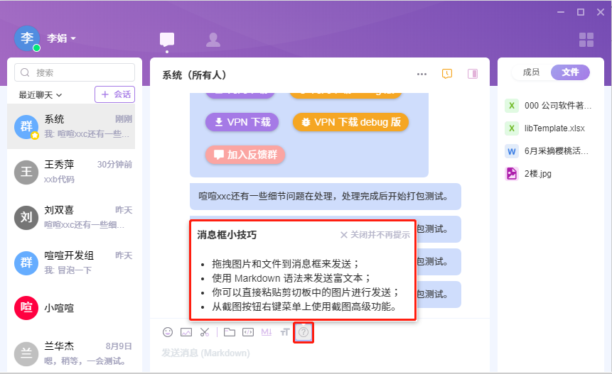 我们还提供回话聊天消息框的一些使用小技巧,供大家使用参考。
