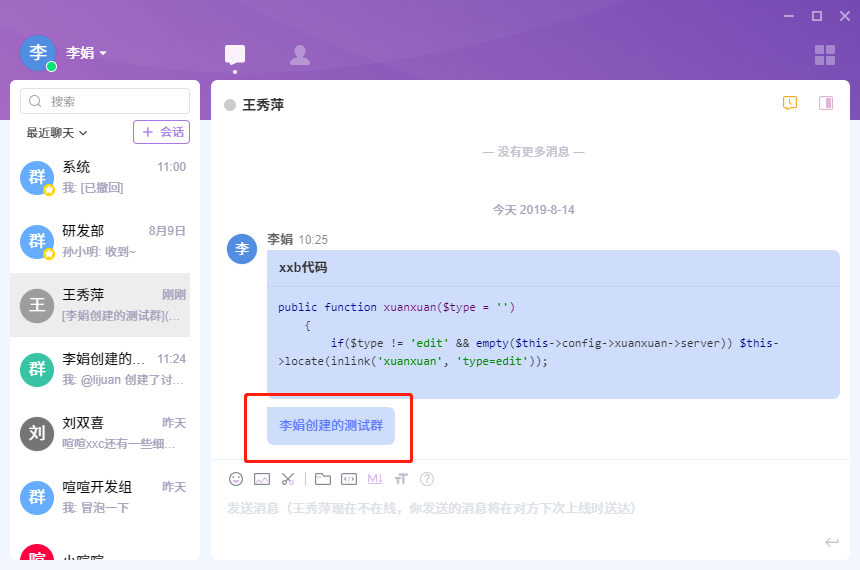 我们着重说明一下在会话聊天页面里如何管理群组会话。