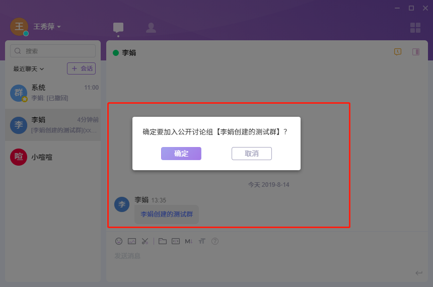 点击确定后,就可以加入该群了。