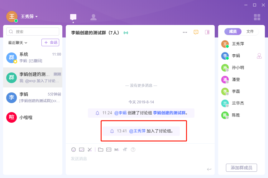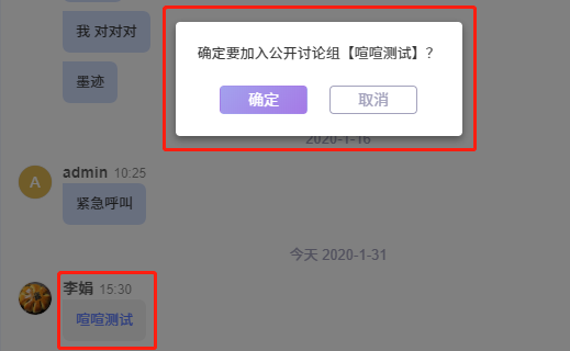 - 设置白名单: 讨论组和公开讨论组的管理员可以为会话设置白名单,在白名单之外的用户无法重命名会话及在会话中发布消息,但能接收会话中其他人发布的消息 。