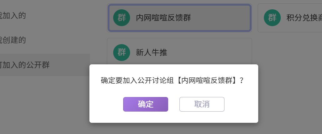 点击可加入的群组名称,弹窗会询问你是否要加入该群组。