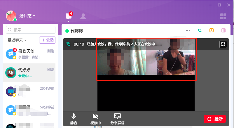 对方收到邀请,加入会议后,即可开始进行音视频通话了。