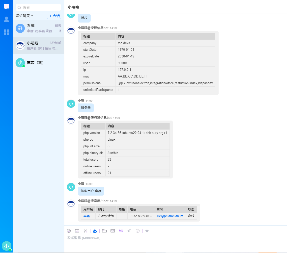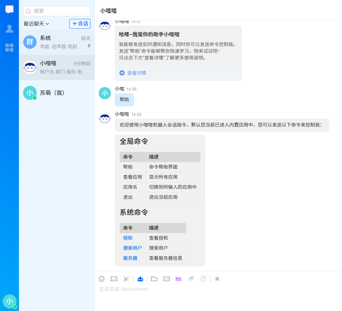 新版本推出的小喧喧机器人是一种自动化程序,可以向你自动推送消息,并实现简单的命令交互。