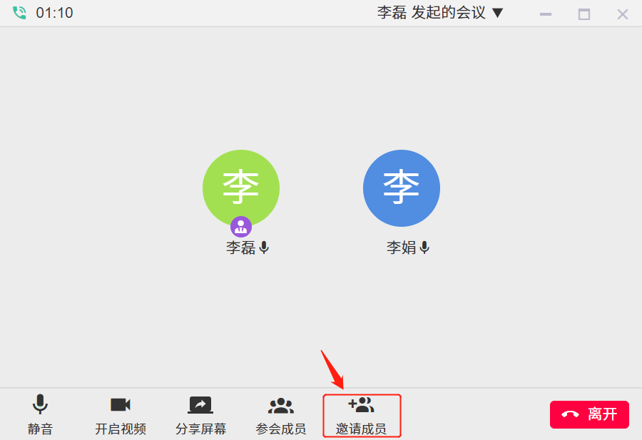 - 会议中受邀成员点击右下角“离开”将自动退出该会议,会议结束前均可以通过邀请信息再次加入。