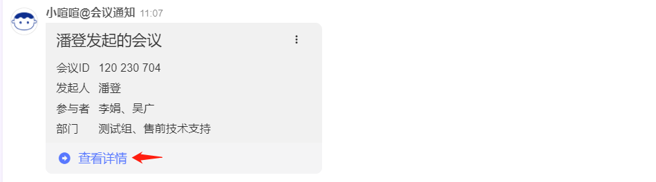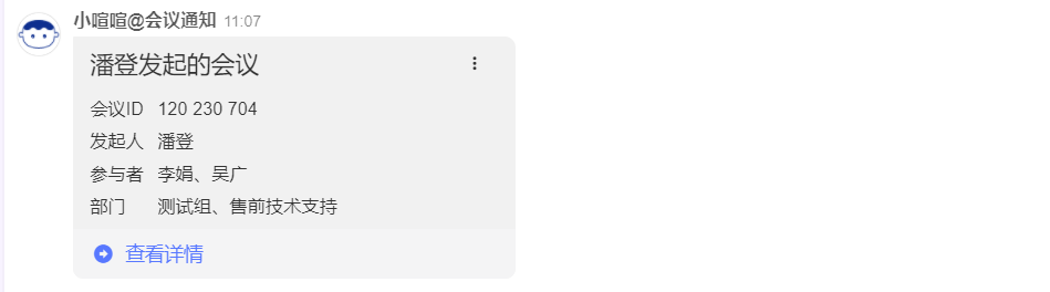 会议创建成功后,小喧喧会向发起人和参会人发送会议创建通知。