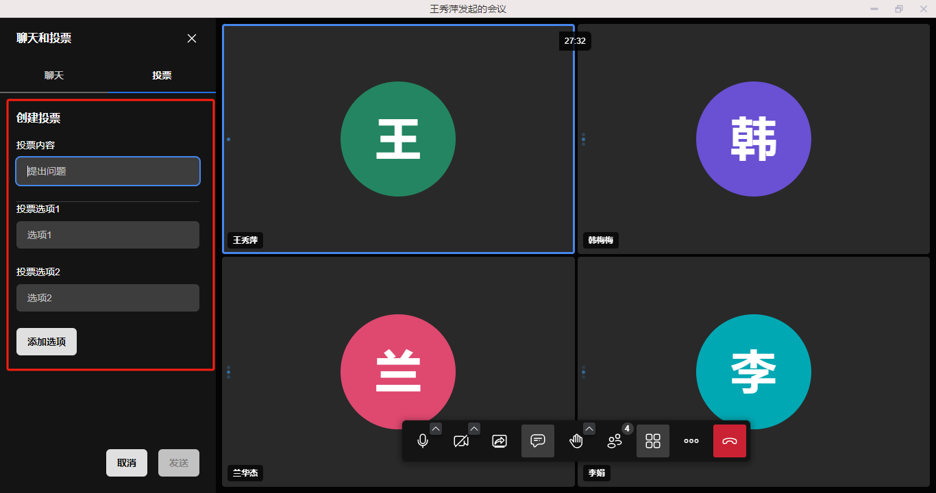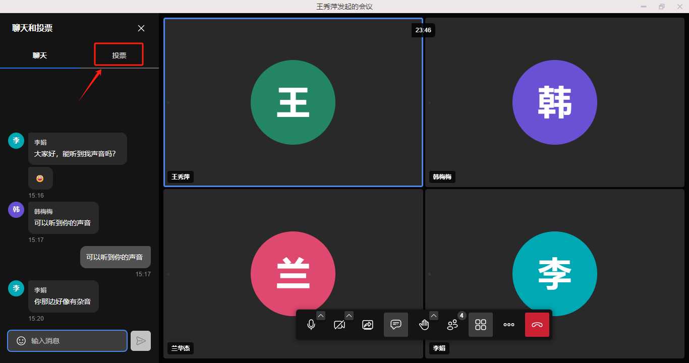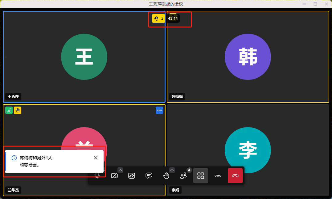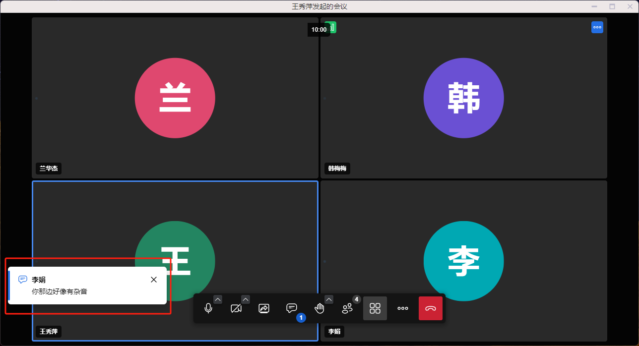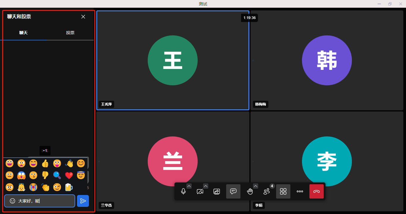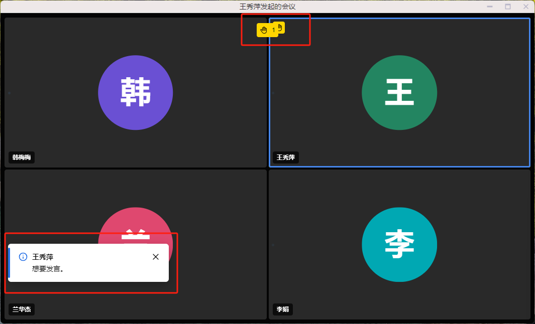 2. 私聊的消息只有发送人和接收人双方可以看到,会议内其他成员看不到这类消息。