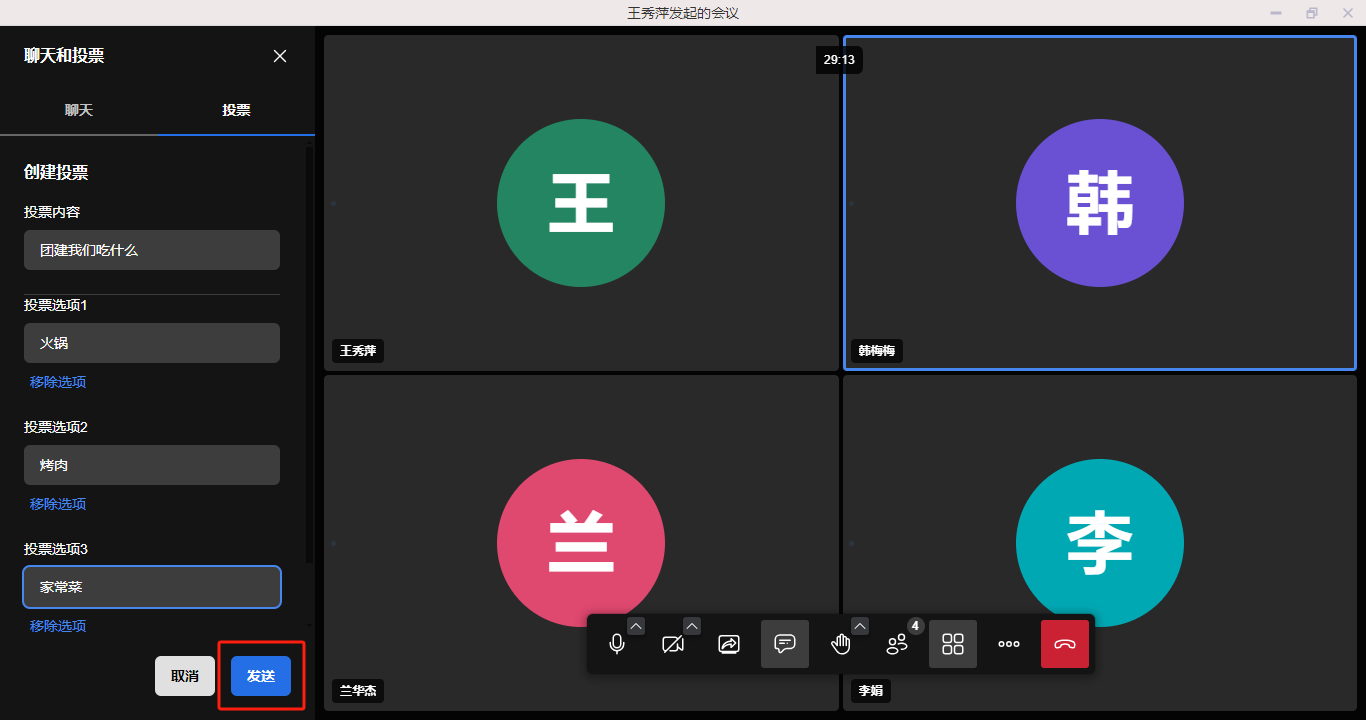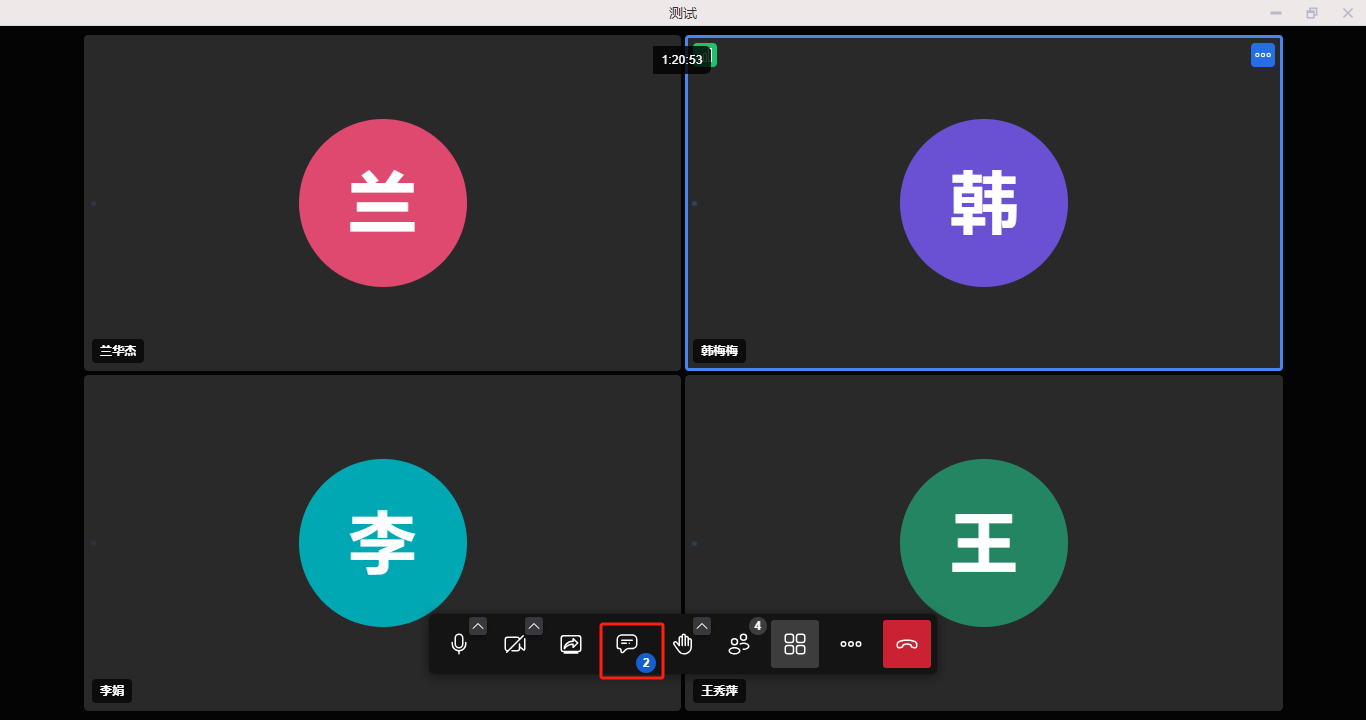 3. 发送后,会议成员将会在聊天按钮处看到消息未读条数。
