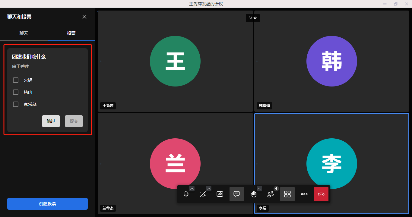 2. 支持群内成员创建投票,结构为投票主图、投票选项。