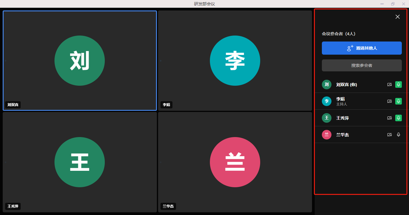 - 点击下方成员列表按钮,显示已入会的参会成员。