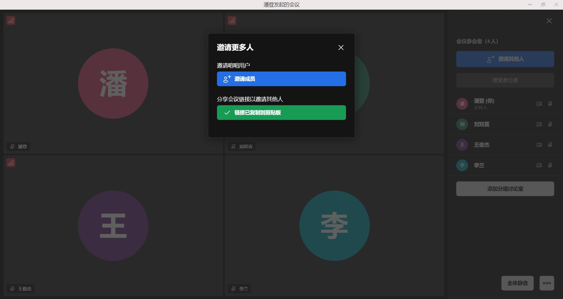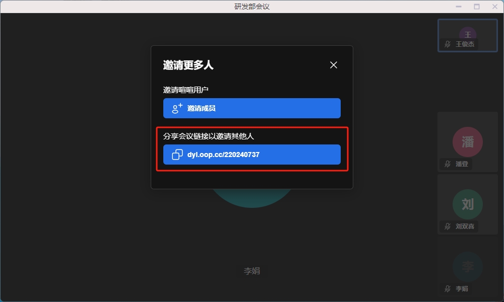 2. 复制生成的会议链接,通过电子邮件、即时通讯工具或其他通讯方式将链接发送给受邀成员。