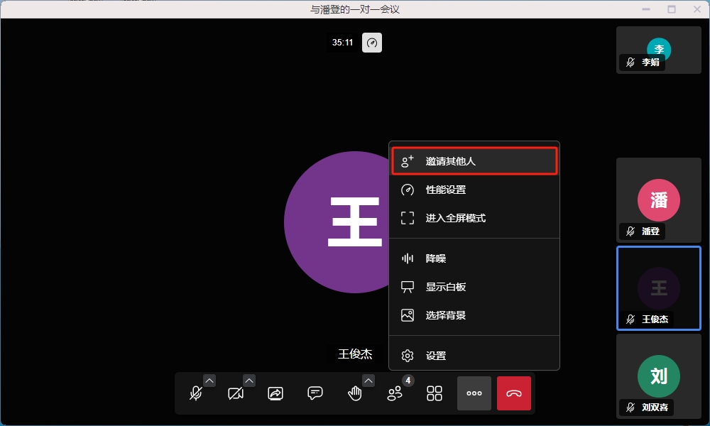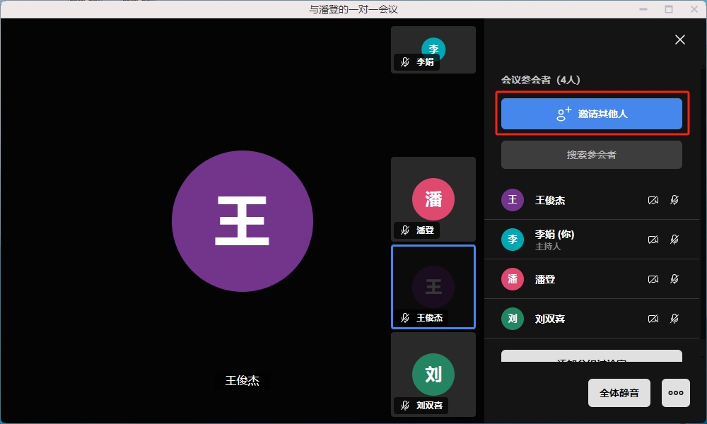 1. 点击更多按钮中的“邀请其他人”按钮或点击成员列表上方的 “邀请其他人”按钮,选择想要邀请的用户即可成功邀请。