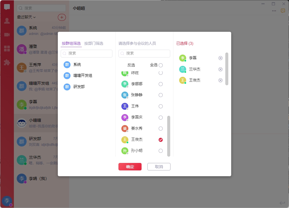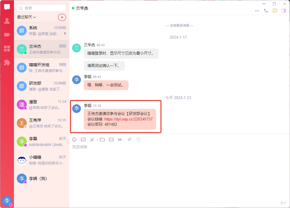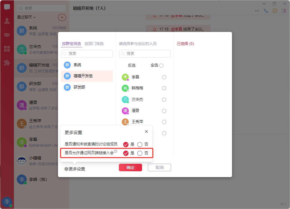 2. 被邀请的用户将会受到小喧喧的会议邀请通知。