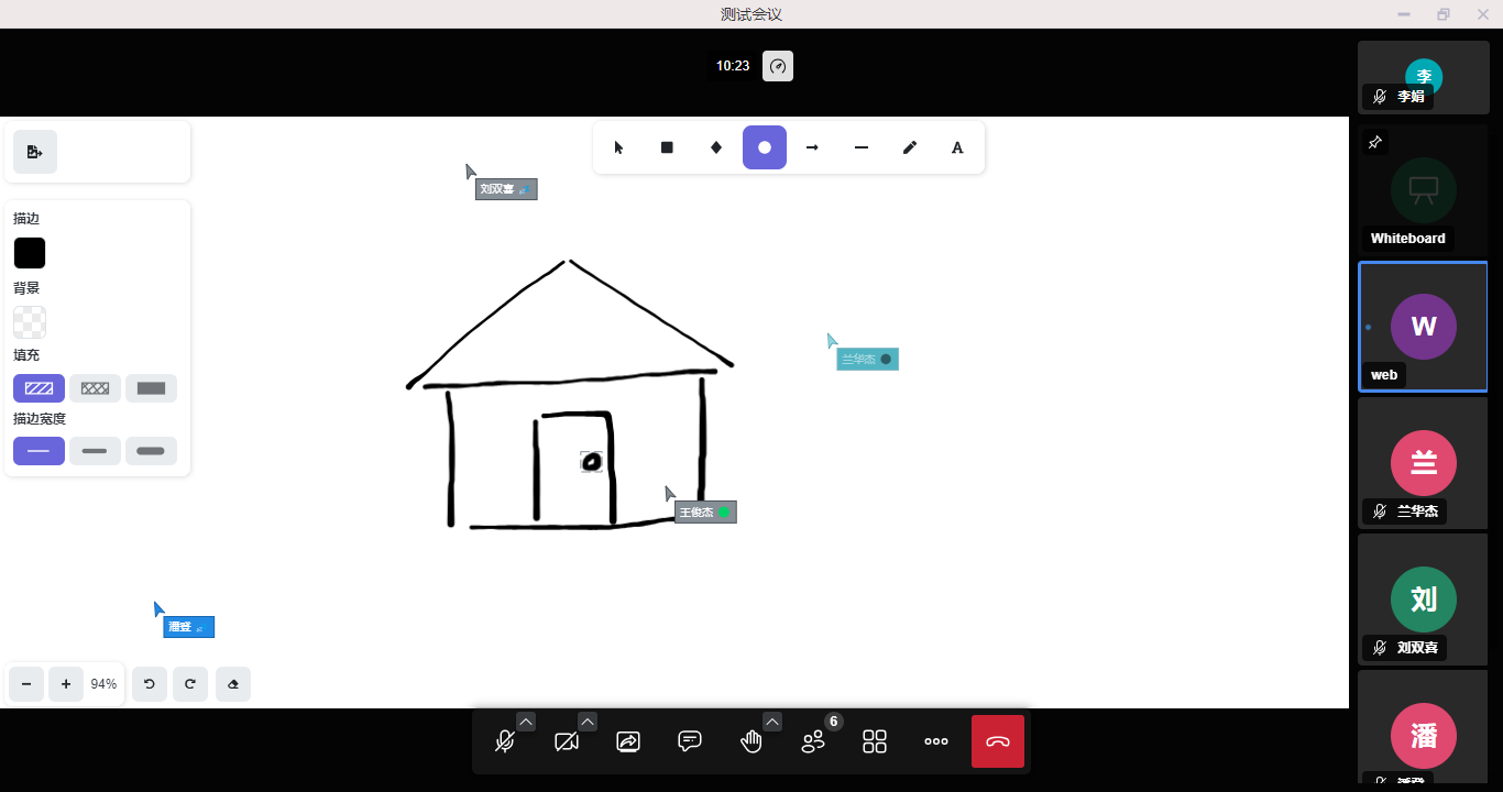 1. 所有参会者都可以同时在白板上进行操作,所有更改都会实时同步。2. 每个参会者的操作可以用户名进行区分。