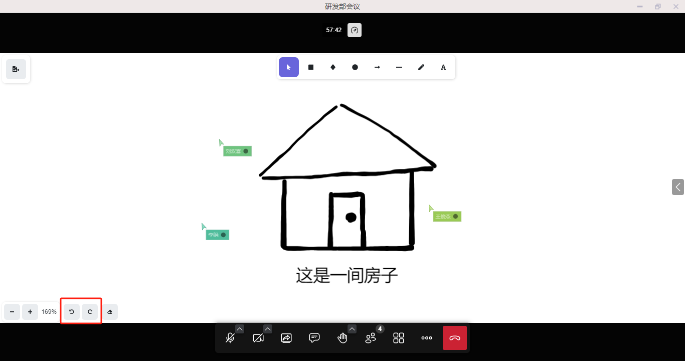 支持撤销和重做,使用户可以轻松纠正错误操作或恢复之前的操作。1. 撤销:点击白板左下角的撤销按钮即可撤销最近的一次操作。通过多次撤销可回退到需要的状态。