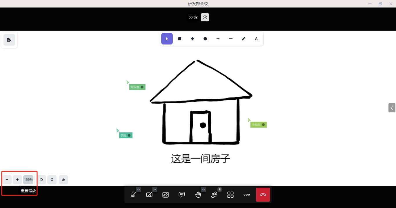 1. 所有参会者都可以同时在白板上进行操作,所有更改都会实时同步。2. 每个参会者的操作可以用户名进行区分。