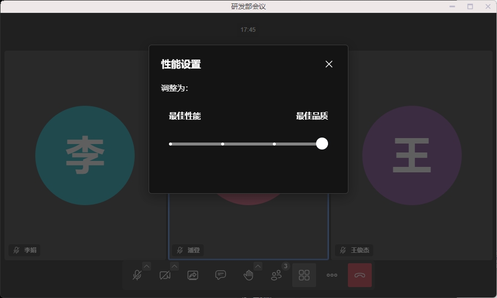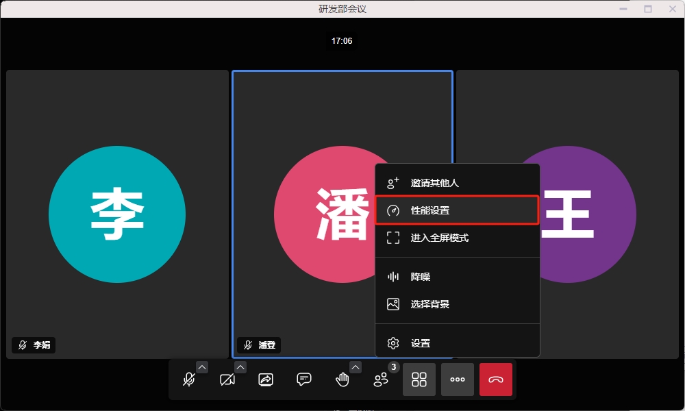 - 性能测试功能允许用户在会议开始前或进行中测试调试性能,以确保会议质量不受影响。点击更多设置中的“性能测试”即可调试。