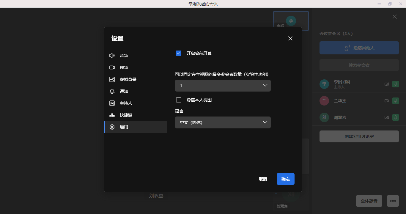 - 此设置允许用户定义在主视图中显示的最多参会者数量,以优化会议界面布局和观看体验。保存设置后,主视图最多可固定展示该数量的参与者。
