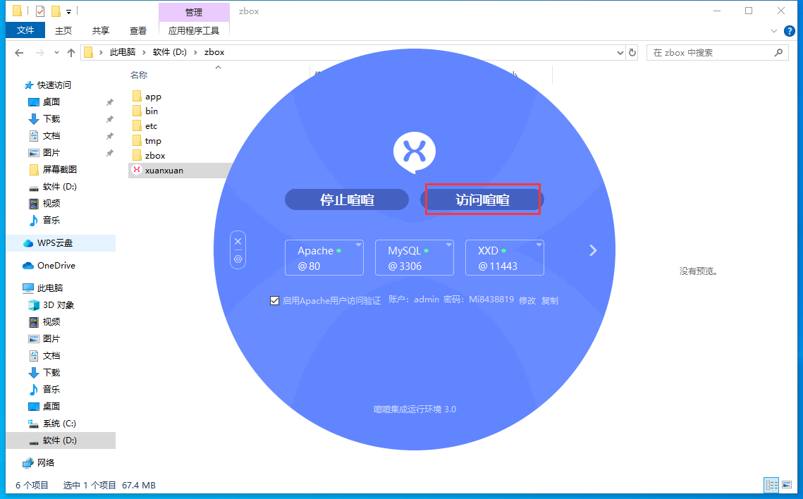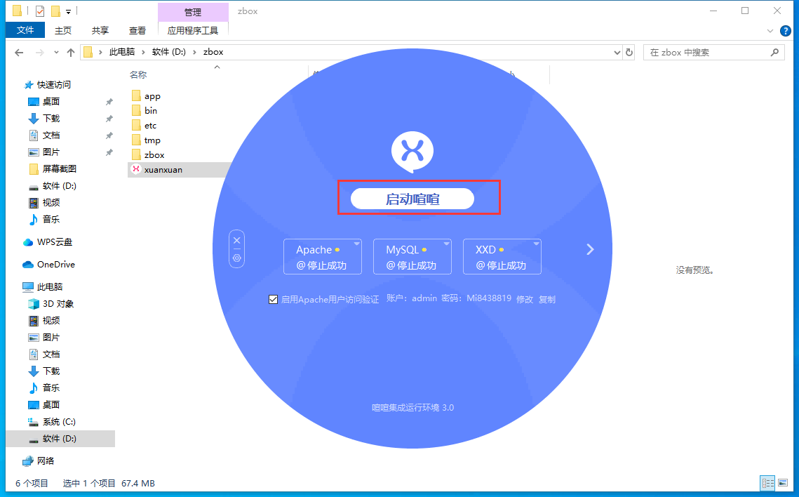 在官网下载windows一键安装包(.exe结尾) ,下载后, 双击解压到某个盘符的根目录下 ,得到一个zbox文件夹,如D:\zbox,打开zbox文件,双击喧喧启动后端服务。