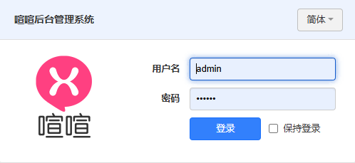 点击访问喧喧后台,进入喧喧后台的登录页面。后台的默认登录用户名 admin,密码123456 。