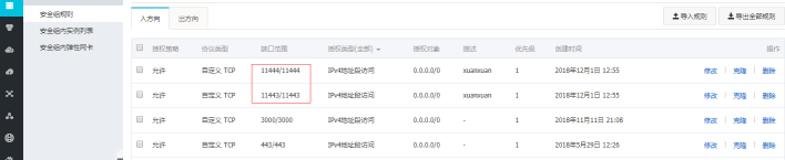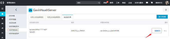 如果服务器使用的是阿里云ECS,需要注意查看服务器所属安全组策略中是否开启了喧喧相应端口。参照以下截图设置: