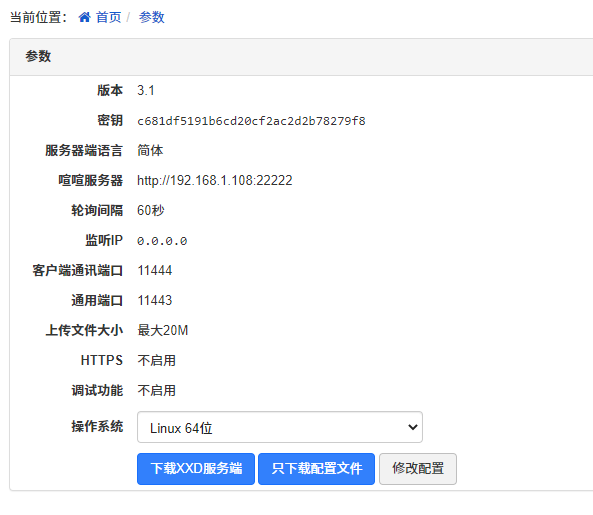 配置完成后,可以下载配置文件放到 zbox\xxd\config里,替换掉原来的xxd.conf文件。