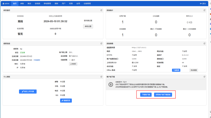 我们推荐使用喧喧服务端部署包来安装下载,用户登录喧喧后台,从客户端下载区块来下载客户端使用。管理员可以直接选择下载客户端进行下载,其他同事可以按需生成下载链接,按照下载链接地址直接下载即可。