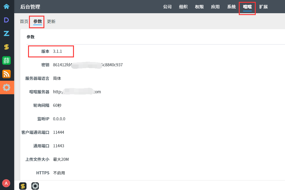 在安装完成后以管理员身份登录ZDOO协同站点,进入 后台管理 → 喧喧 功能页面,查看内置的喧喧版本是否为最新版本,如果不是最新版本则需要手动进行升级。