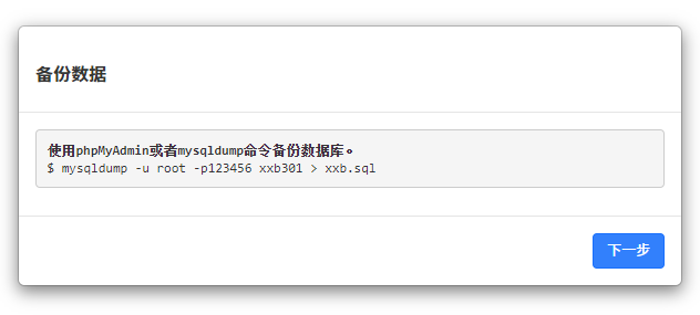 按照页面提示进行升级 操作,在此步骤中也会提示对数据库进行备份,在页面上出现升级成功提示表示升级完成。
