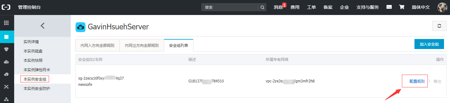 如果服务器使用的是阿里云ECS,需要注意查看服务器所属安全组策略中是否开启了喧喧相应端口。