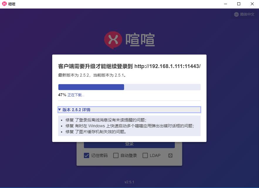 自喧喧2.5.0版本起,喧喧新增客户端自动升级功能。