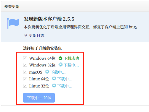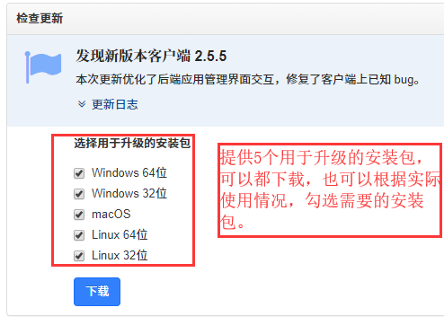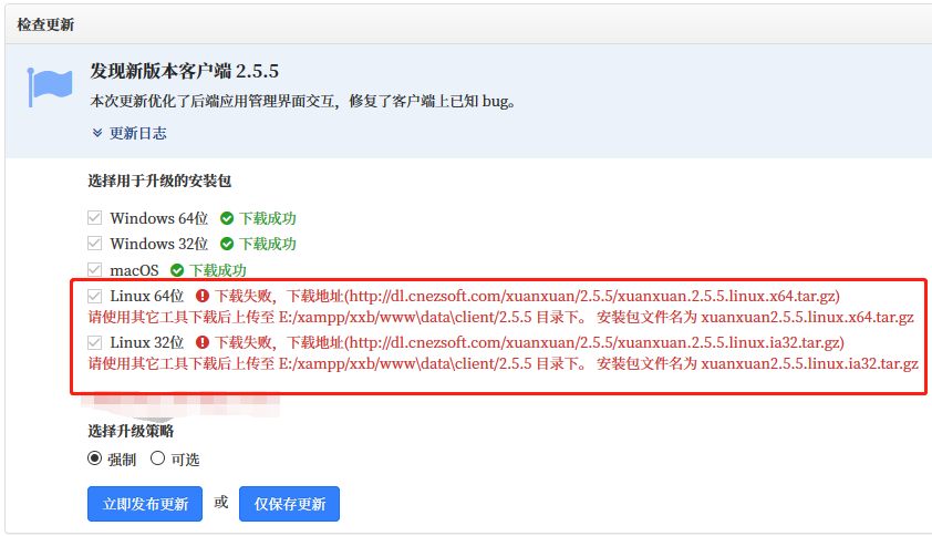如果下载失败,管理员可以按照页面的提示,把升级安装包,升级包的文件必须是 .zip 格式,放到 xxb/www/data/client/3.1 目录下。