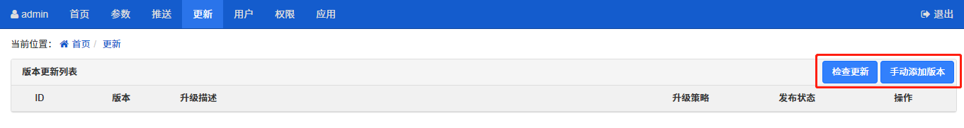 点击页面右侧的 检查更新 按钮,就可以进入喧喧客户端版本的添加页面。