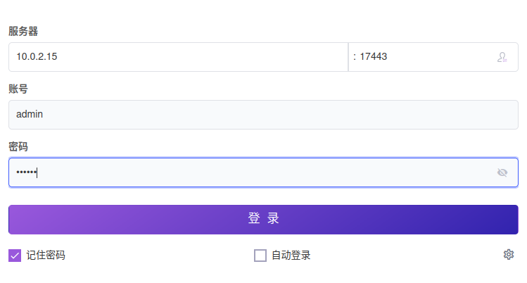 4.打开客户端,填写服务器账号密码测试登录