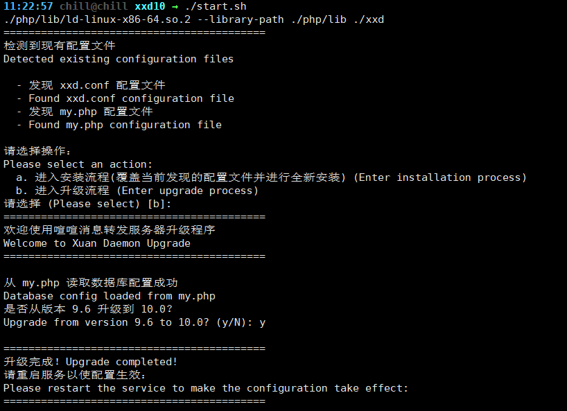 3.进入xxd.10.0.linux.x64目录执行命令,进入升级程序