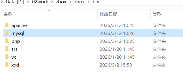 删除zbox/bin/mysql目录,复制zbox_10.0/bin/mysql目录到zbox/bin/目录下