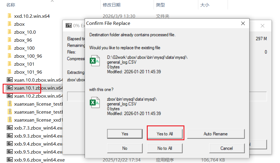 下载10.1版本windows一键包并安装解压覆盖zbox目录,重复文件选择全部覆盖