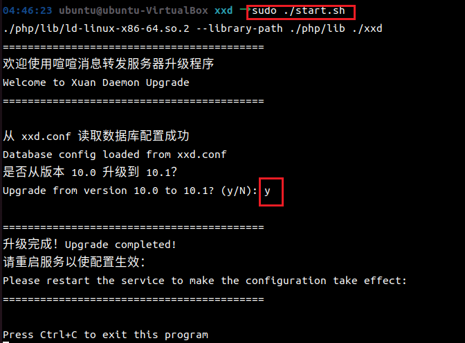 升级完成,按ctrl + c 退出程序重启zbox