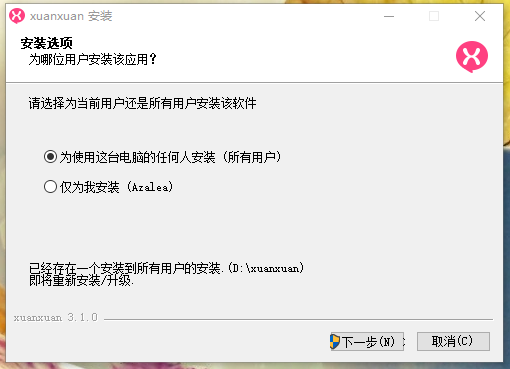1.双击安装程序,进入喧喧IM安装操作界面,选择要为本机那个用户安装,个人电脑默认即可。