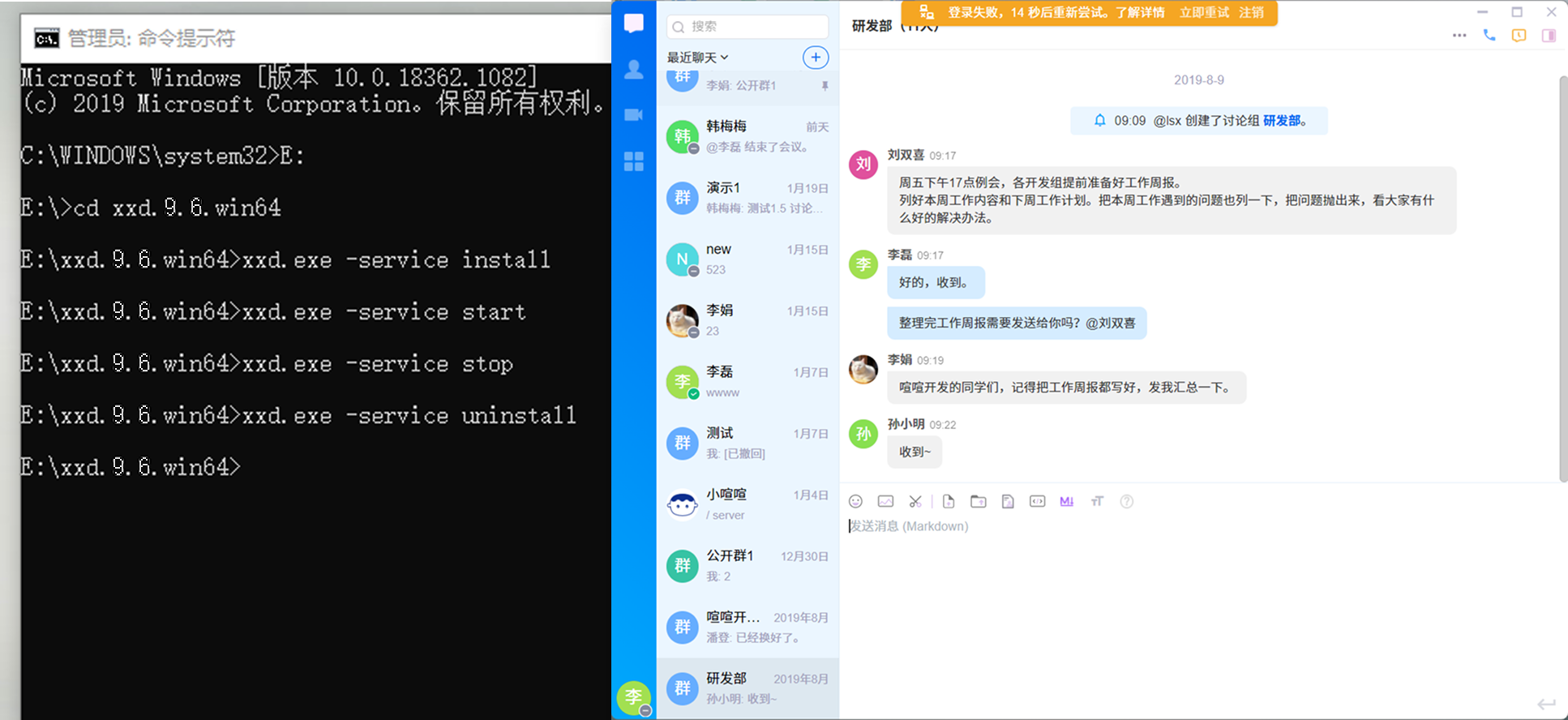 喧喧客户端用户掉线,提示登录失败,那么就是成功停止和卸载了XXD服务了。