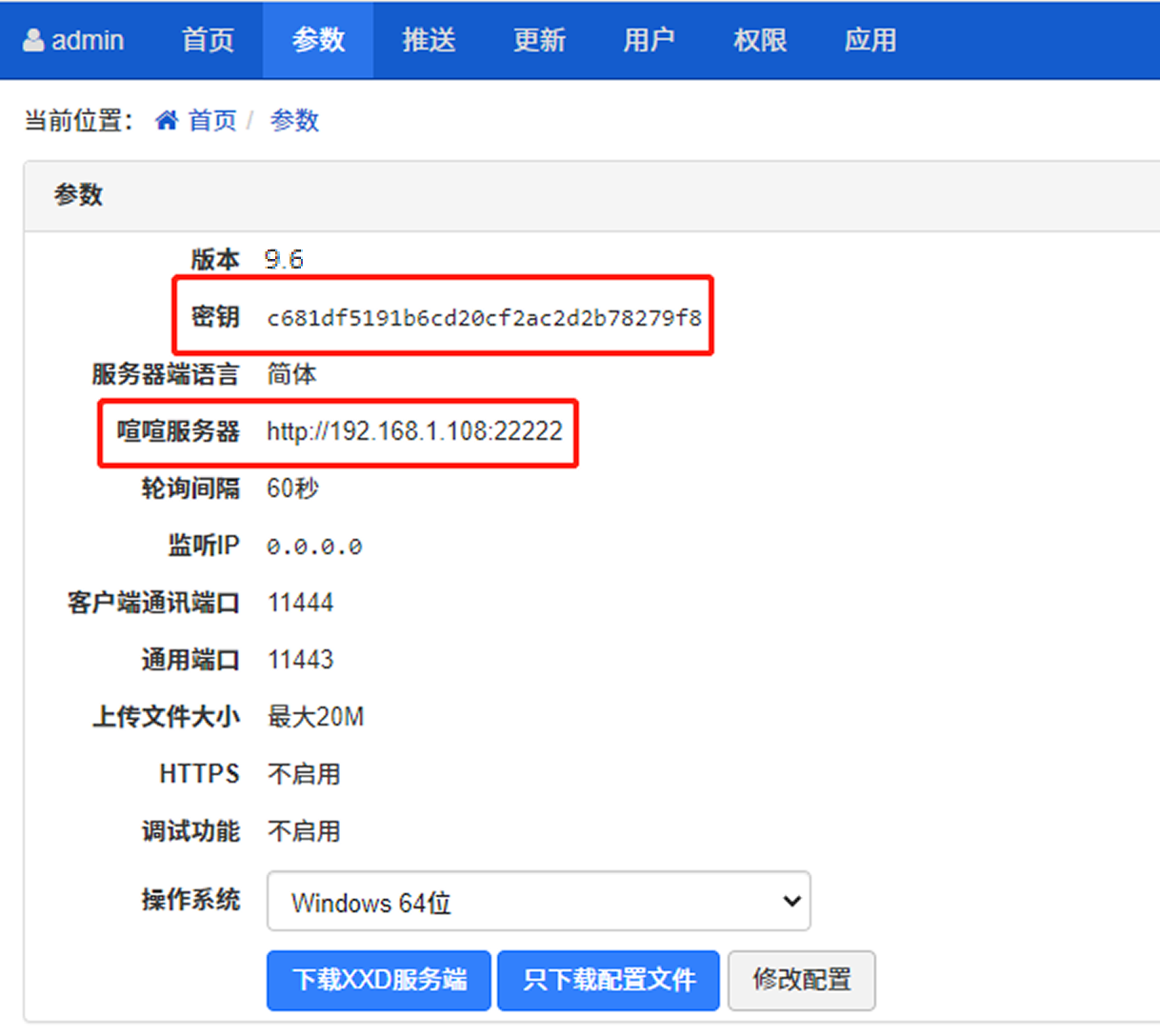 - 你同样需要在XXB后台配置好服务器参数,并把配置文件覆盖到你的XXD服务的对应的xxd.conf里。