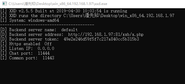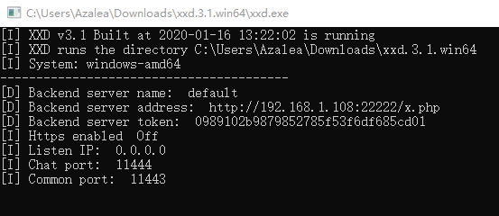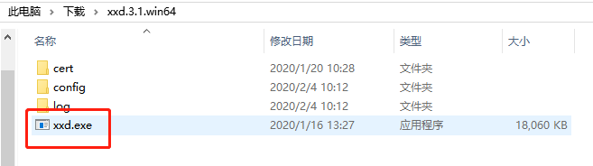 下载成功后,会得到1个 xxd.3.1.win64.zip 的文件,解压后,直接运行文件夹中的 xxd.exe,即可启动 xxd 服务。