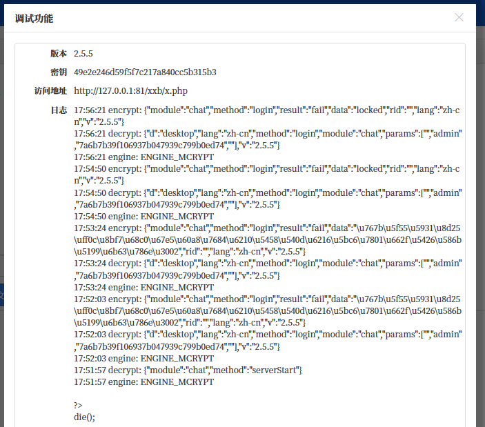 12、调试功能:如果启用调试功能开启的话,可以直接查看日志信息。